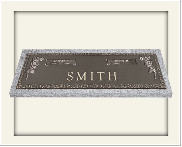 Bronze Markers are very stately in its appearance with raised lettering and images. There are a variety of options when it comes to color, lettering, and shapes. Not every cemetery allows bronze, but some cemeteries require only bronze markers. Usually bronze markers are placed on a granite or marble base and sit flat on the ground. Option of contemporary and traditional styles.